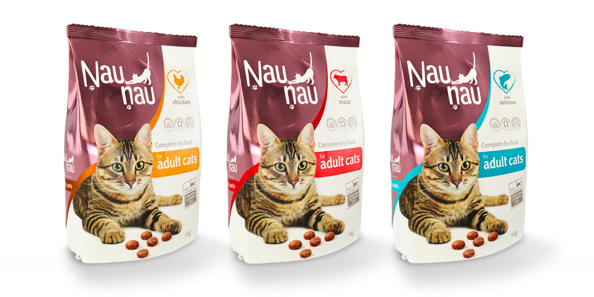 Complete dry food for cats with chicken, beef and salmon